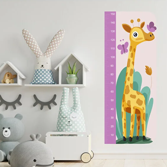 – Sevimli zürafa figürüyle süslenmiş, çocukların odasına neşe katan boy ölçme cetveli.